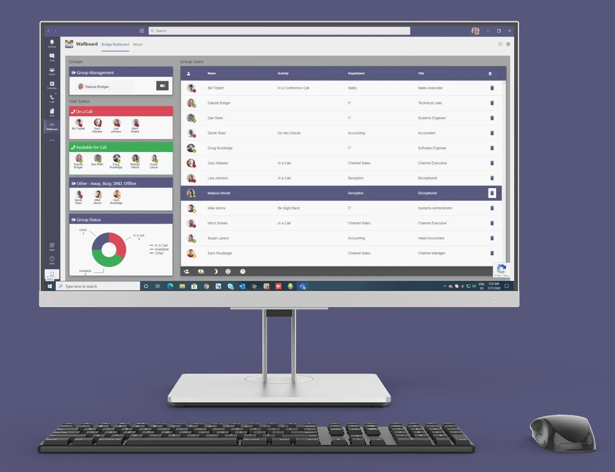 Monitor group presence and availability in real time with Bridge Wallboard for Microsoft Teams.